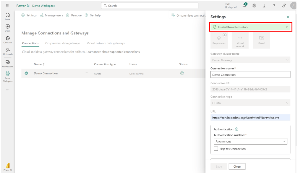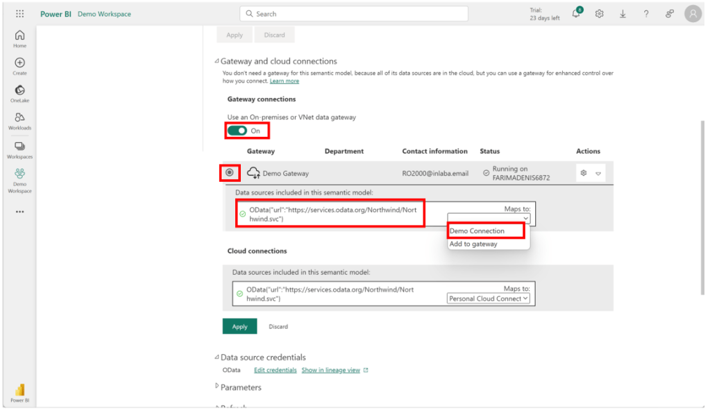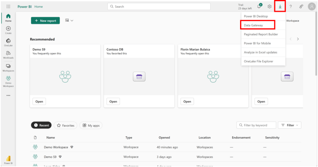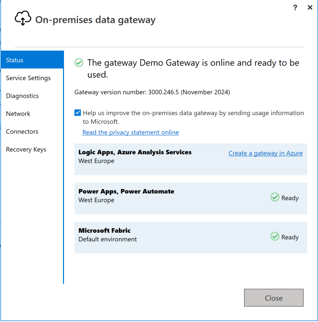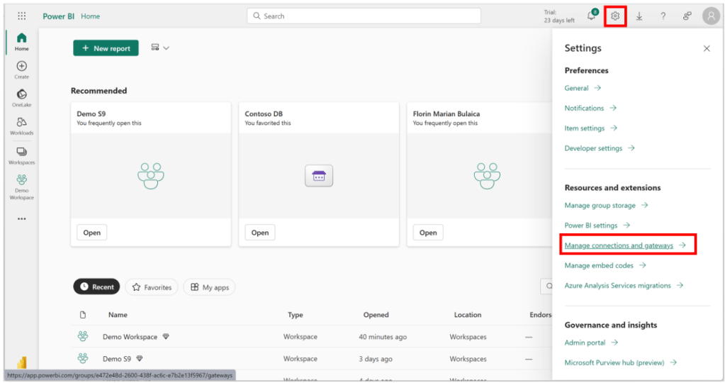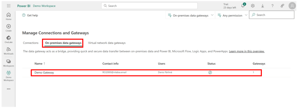 7. Verifica ca Gateway-ul este vizibil in Power BI Service
