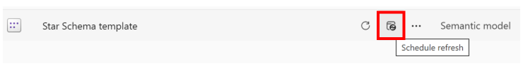 - Selectați pictograma Reîmprospătare Programată (Scheduled Refresh), iar pagina de Setări pentru acel set de date se va deschide.