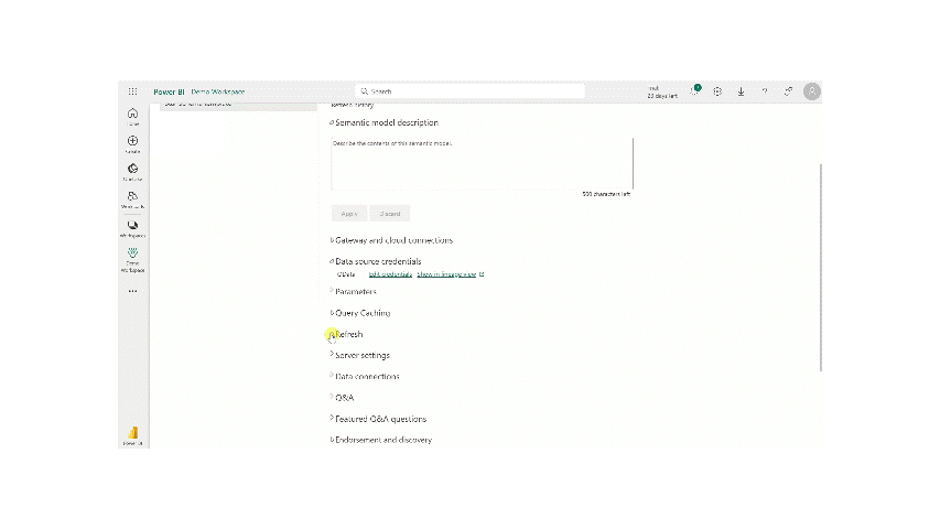 Odată ce toate credentialele sunt configurate, secțiunea Refresh din pagina de Setări a modelului semantic va deveni disponibilă.