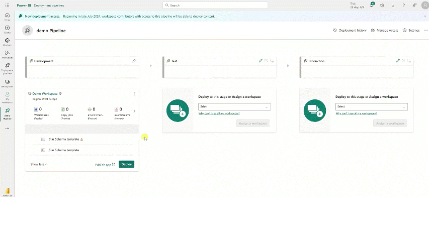 Notă: Deployment Pipeline este o funcționalitate disponibilă în licențele Power BI Premium.