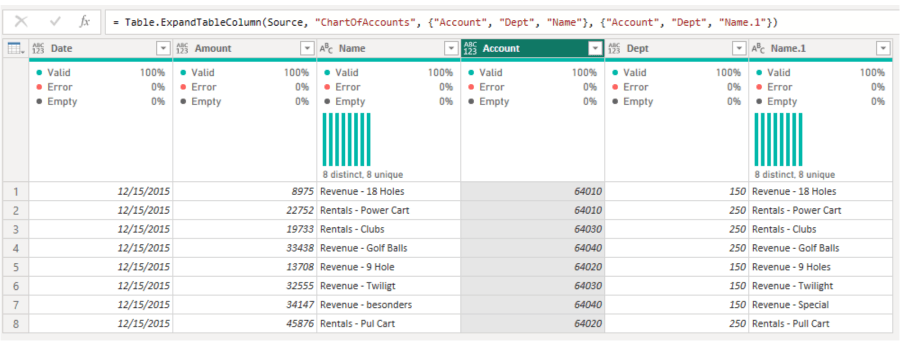 Odată ce tabelul îmbinat este extins, tabelul returnat va avea acum 8 rânduri, cu 1 rând pentru combinațiile „64040 & 150” și „64020 & 150”.