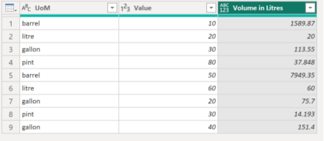 (volume as number, UoM as text) =>
